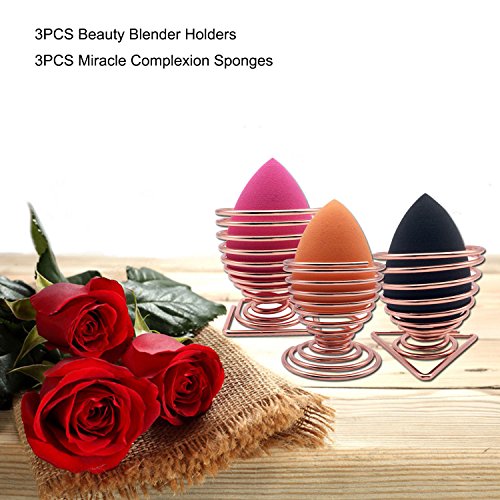 - PACKAGE : 3PCS Beauty Blender Holders + 3PCS Miracle Complexion Sponge(It to evenly blend makeup for a smooth, enhanced finish; use damp for a dewy glow or dry for a full coverage)