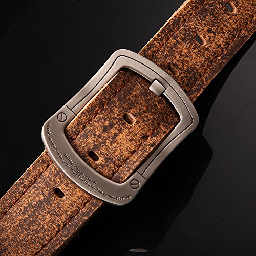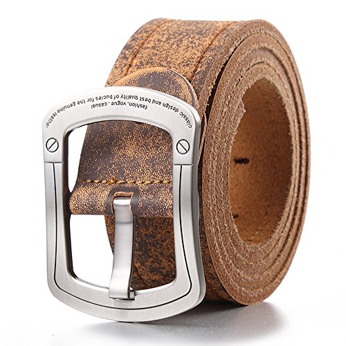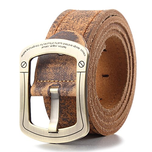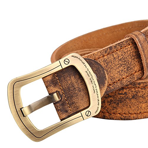 Hi-tech finish for durability and a noticeable fashion statement sturdy heavy duty classic roller buckle. This belt is a perfect match with jeans. 100% Genuine Leather belt. this excellent cowhide leather plus a Without Nickel Alloy Buckle Combined by our experience Artisan will make a good belt that could last longer than you can image . There are two belt buckle to choose, the one is silver plated and another one is Ancient bronze plating.