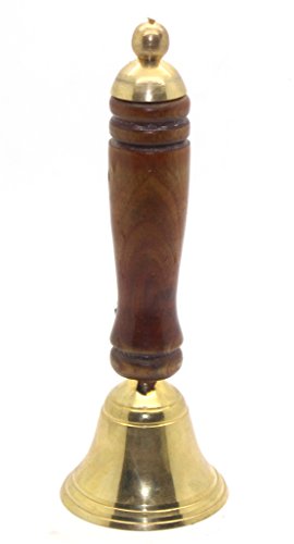 -. Title : Crystalo - Brass Hand Bell with Wooden Handle - 6.5 Inch Tall