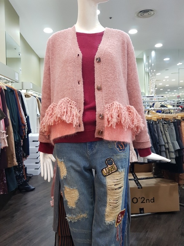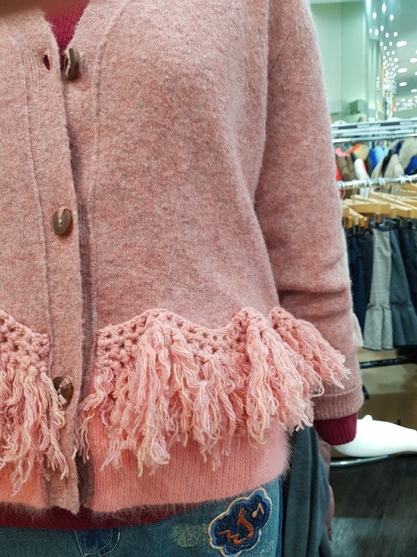 전면 밑단의 수술 장식 디테일이 포인트인O'2nd모혼방 니트 가디건으로 밑단의 배색과 사선으로 떨어지는 수술 옆라인, 포인트 단추와 같이 디테일이 살아있어 더욱 이쁘게 착용이 가능한 아이템입니다.