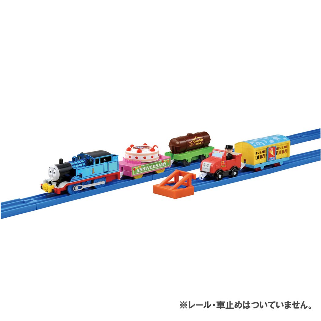 To celebrate the 25th anniversary of the Plarail, Thomas who became shiny is a freight car set celebrating at the party with Sir Ham Hat Hat!