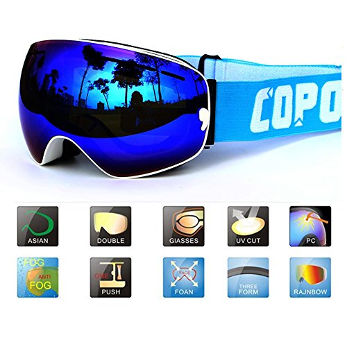 Homkm 고글 스노보드 스키 【밀러 렌즈 더블 렌즈 거미 # 멈추어 가공 UV컷 맨즈 레이디스】 (Lake Blue)