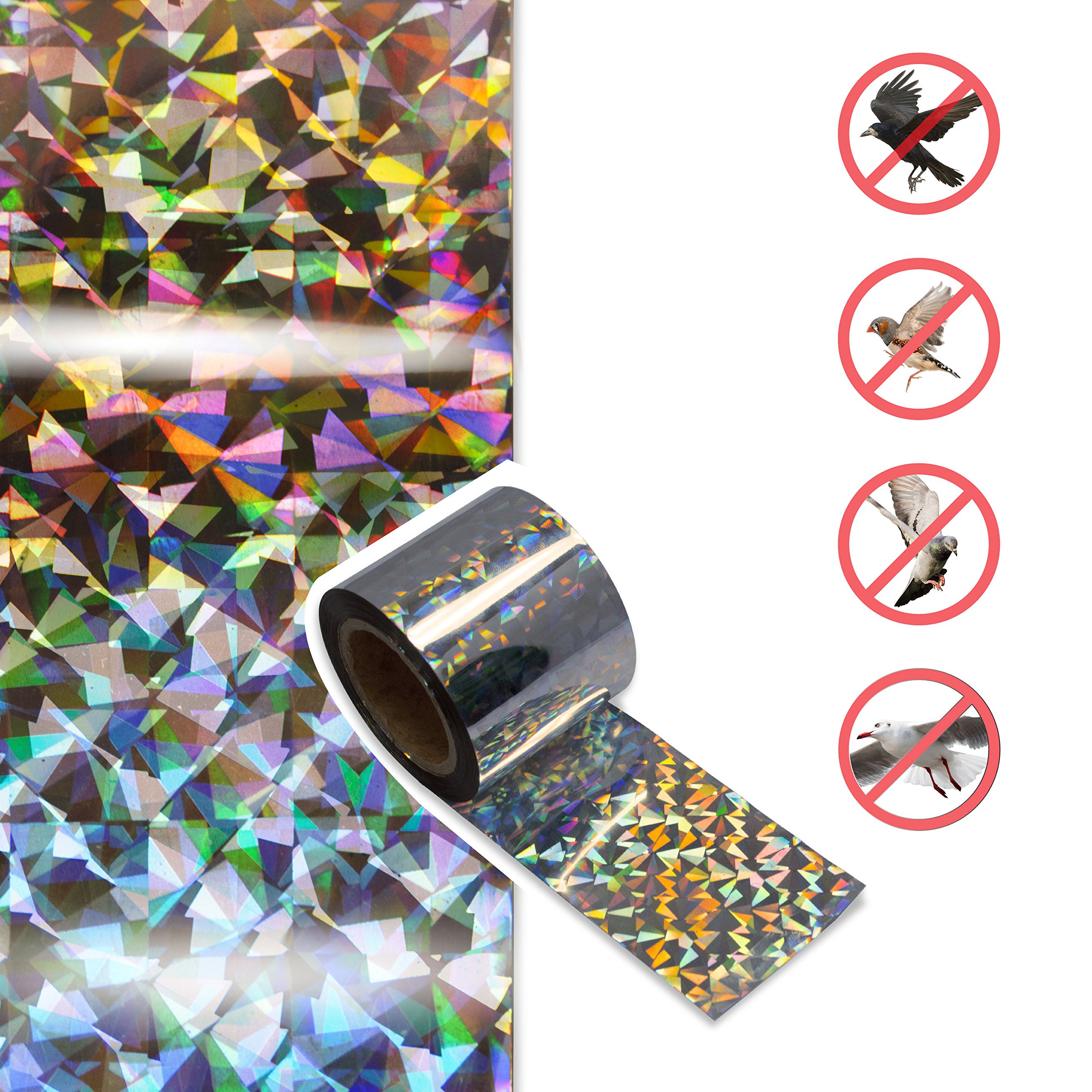 - A rainbow-colored tape with a shining 3D holographic effect due to its unique stereoscopic effect and gloss reflects the sun's light and keeps the birds away