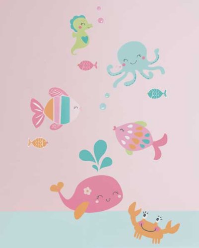 -. Feature : Decals includes four 10 inch x 18 inch sheets of various sized stickers / Decals range in size from 1 inch x 1 inch to 14.25 inches x 8.5 inches / Self-stick adhesive that won't harm walls / Removable and reusable, just peel and stick. Directions are included / Coordinates with the Under the Sea Collection by Carters