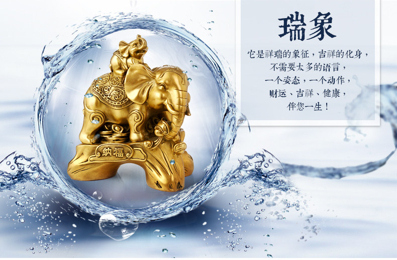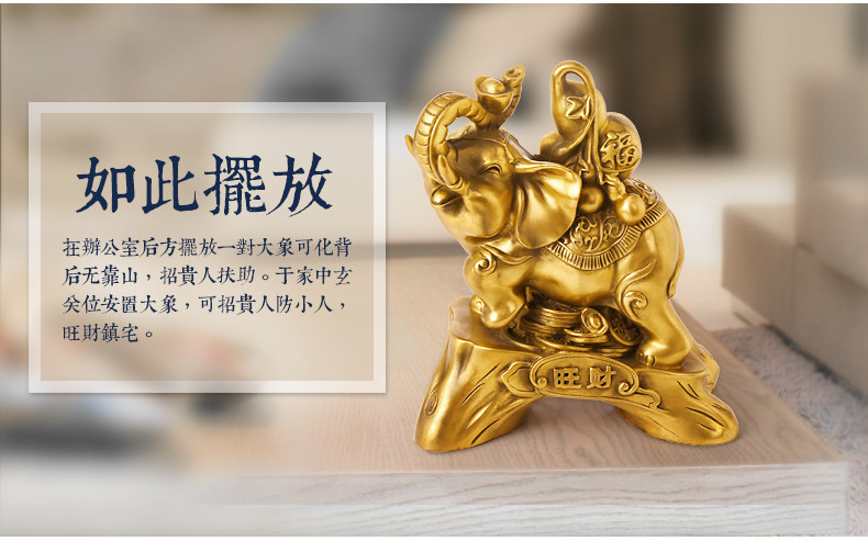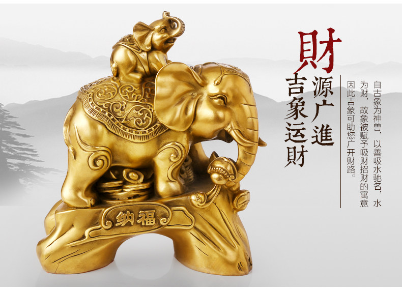上善若水 招财纯铜大象摆件一对  客厅家居装饰品风水工艺品 1975