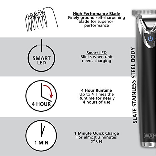 Wahl Clipper Slate Stainless Steel Lithium Ion Plus Beard Trimmers for Men, Electric Shavers, Nose Ear Trimmers, Rechargeable All in One Men's Grooming Kit, by...
