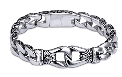 -. Feature : チェーンの側面にそれぞれ彫刻されたステンレスブレスレットになります。 / オーソドックスなデザインに少しパンクスタイルを取り入れることで シンプル感とスタイリッシュさを両立させています。 / こういったブレスレットにしては薄めのデザインなので腕に負担がなくつけやすいデザインです。 / サイズ : 腕周り 21cm 22cm(選択可) 厚さ 5mm 重さ 40g 素材 ステンレス316L / 収納箱、収納袋のセットですのでプレゼントなどにも大変喜んでいただけます。