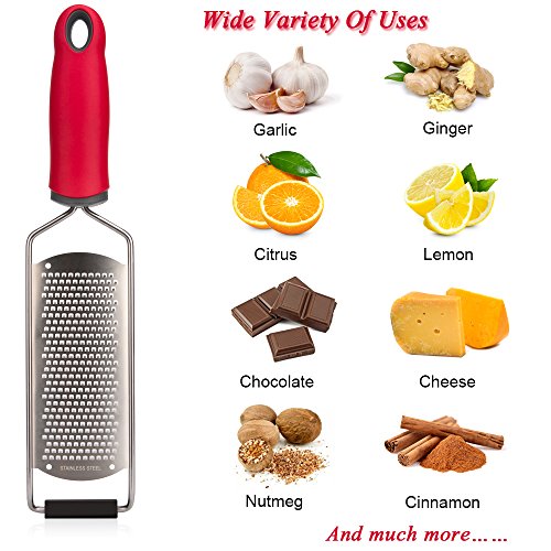 - This versatile handheld grater is perfect for fine grating cheese, chocolate, lemon zesters, garlic, parmesan, coconut, citrus, ginger, apples, onions and more.