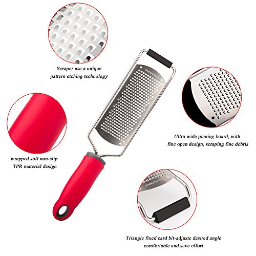 - Considerate design - The triangular foot firmly keeps the grater steady on the coutertop and the flat bottom help fix the angle you want when in use, which is better than the round shape bottom.