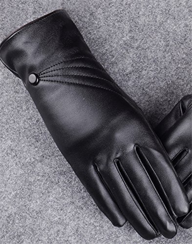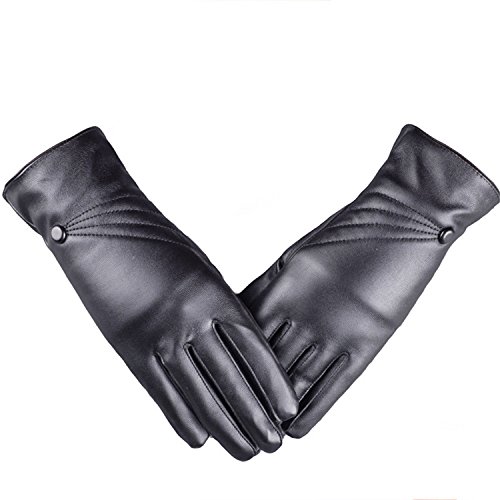 Product Description Features: 100% Brand new high-quality Material: PU Color: Black Size: all yards (long 23cm, Palm width 19cm) Uses: Driving gloves and warm in winter Package include: 1 pair Women Girl Luxurious PU Leather Winter Super Warm Gloves Cashmere Bow0