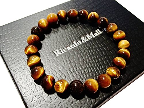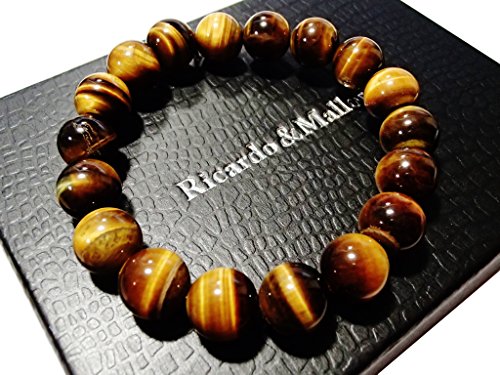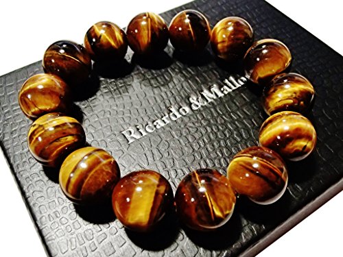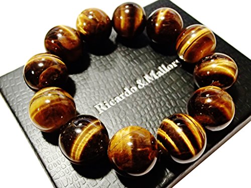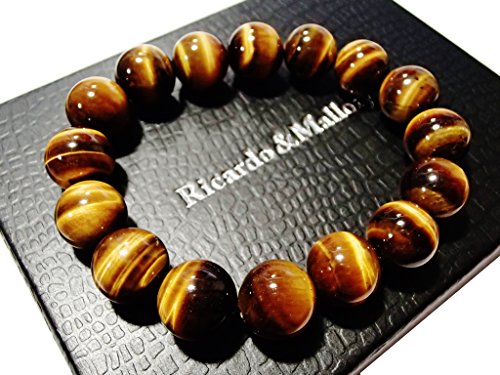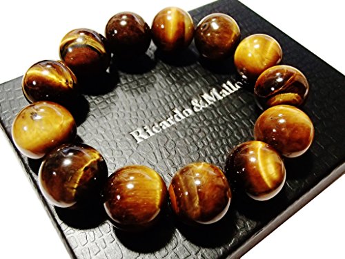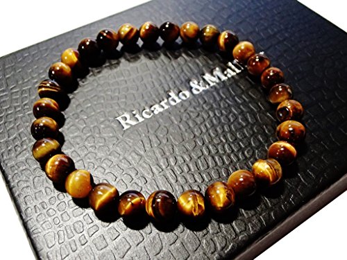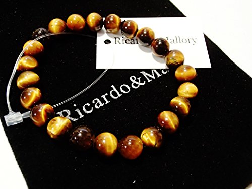 タイガーアイの玉のサイズは6mm・8mm・10mm・12mm・14mm・16mm・18mmの全7サイズ。腕回りのサイズは15cm~18cmまでご用意しました。丈夫なシリコンゴムでつながっており伸縮します。玉の大きさは8mmまでは主に女性向け、10~12mmは男女共通、12以上は男性向けとなります。また、商品の特性上、玉が大きくなるほど緩めになります。