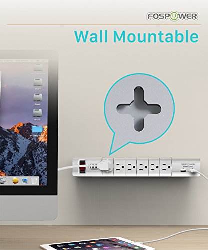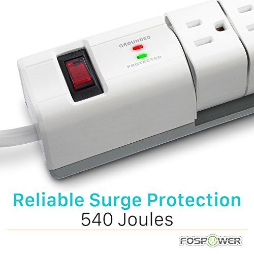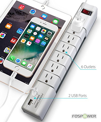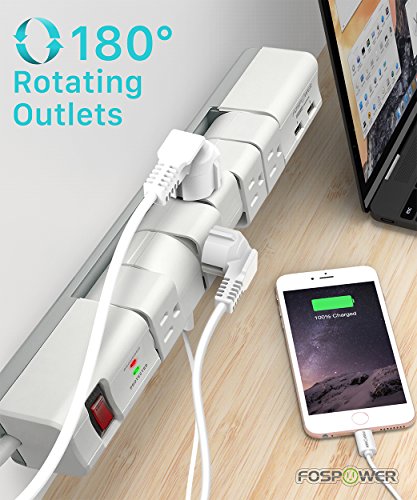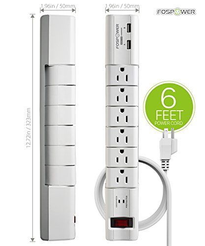 FosPower 6-Outlet Swivel Surge Protector & 2 USB 2.4A Charging Ports Power Strip with 6FT Power Cord Extension, 540 Joules Surge Suppressor, UL Listed (S6SU2J5)