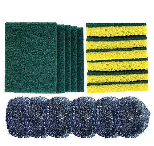 Multi-Purpose Dish Scrubber Set by Scruby | Heavy Duty Scrubbing Sponge, 6 count, Heavy Duty Scour pad, 5 count, Metal Scour Pad, 6 count