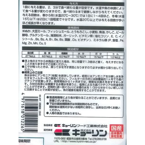 商品紹介 大きな金魚・錦鯉の稚魚に最適なサイズの沈下性飼料。