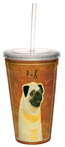 Tree-Free Greetings cc33991 Pug by John W. Golden Artful Traveler Double-Walled Cool Cup with Reusable Straw, 16-Ounce