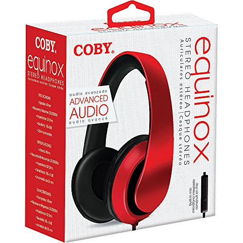 Coby CVH-815-RED Equinox Stereo Headphones with Built-In Mic, Red