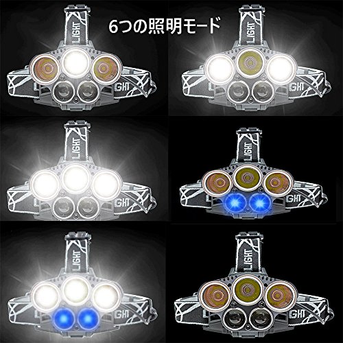원본상품명: RICO Lighting LEDヘッドライト 2017新しいアップグレ?ド 超高輝度防水(3 * T6 + 2 * COB) 屋外作業ヘッドライト USB充電式 ヘッドライト 6つの照明モ?ド