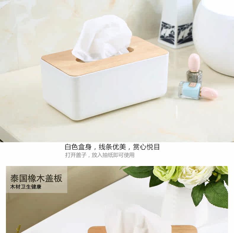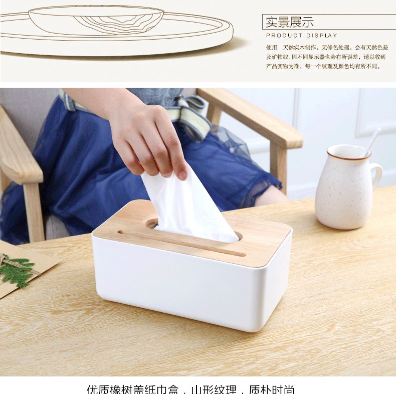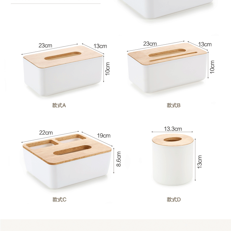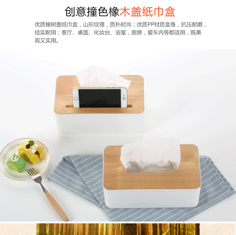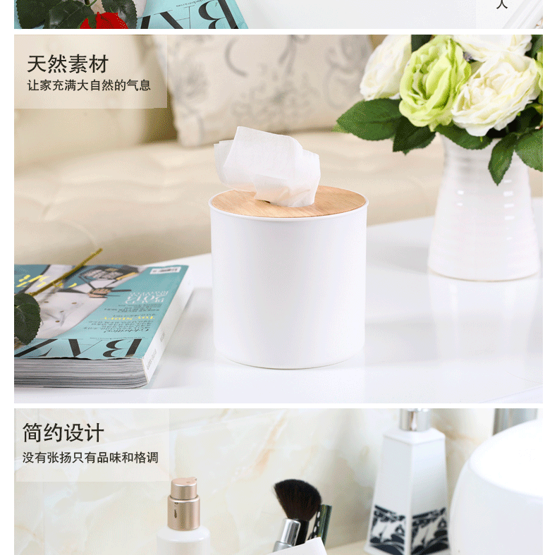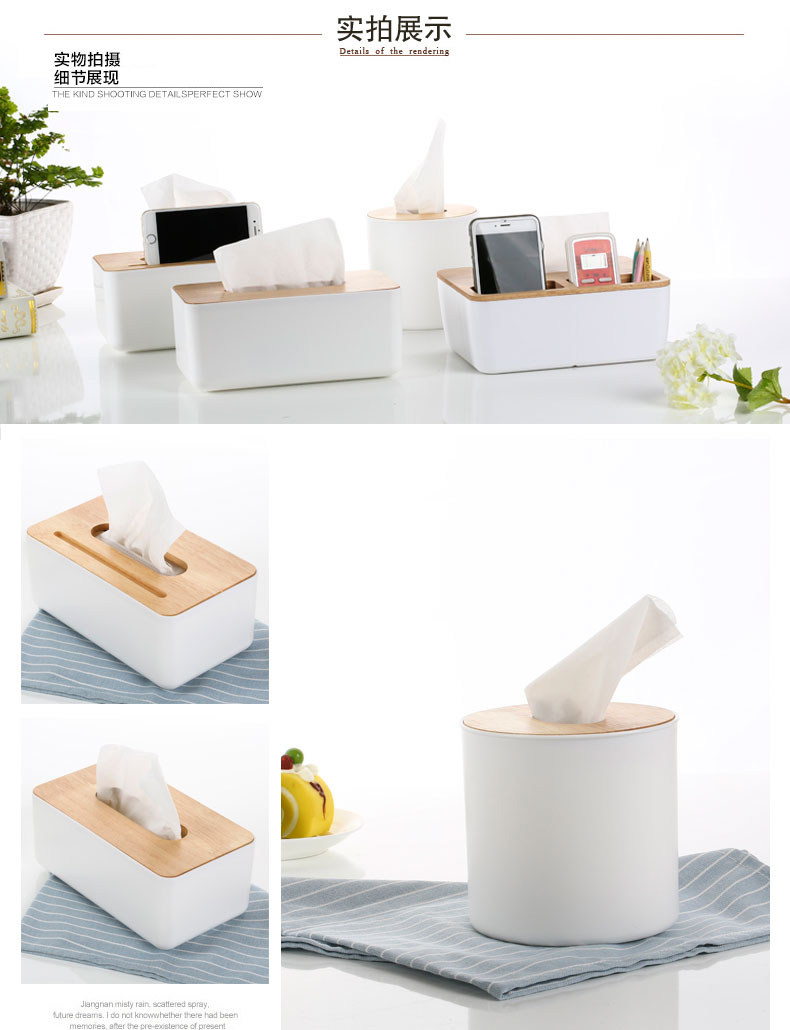 简约木盖圆形纸巾盒 客厅车用纸巾收纳盒加厚塑料抽纸盒子