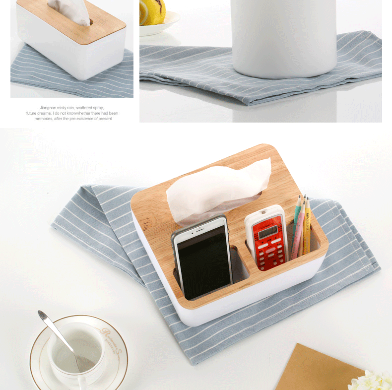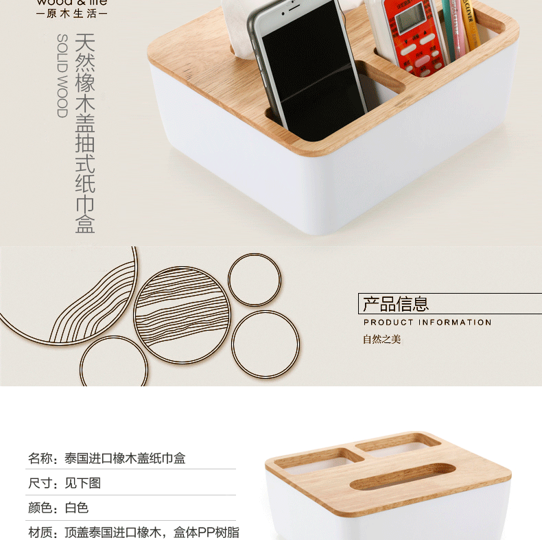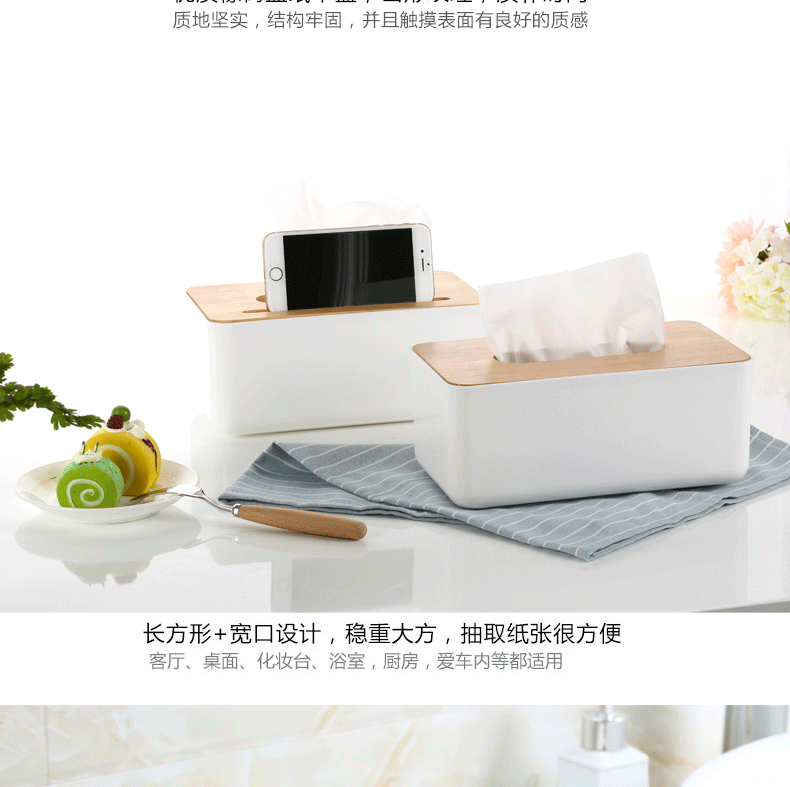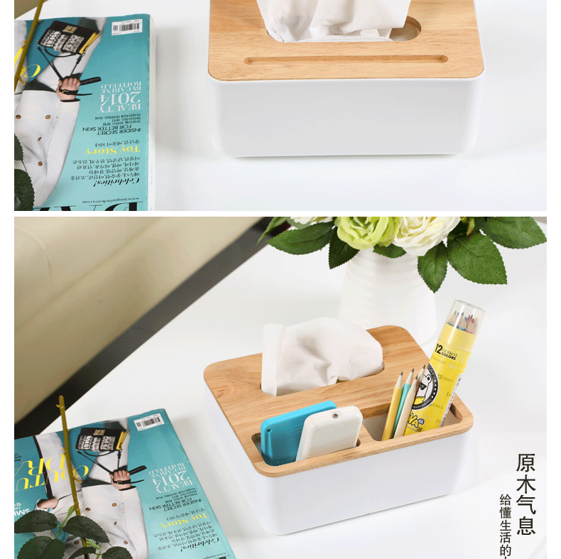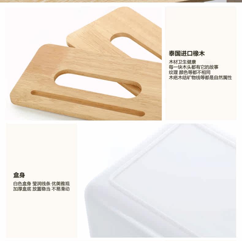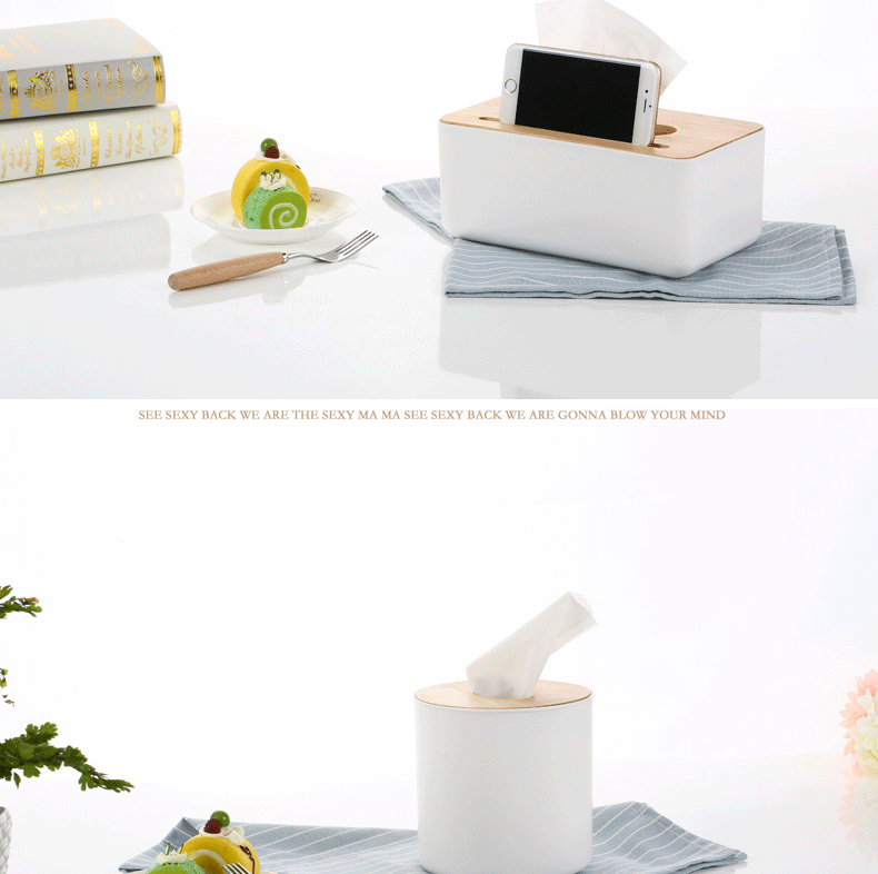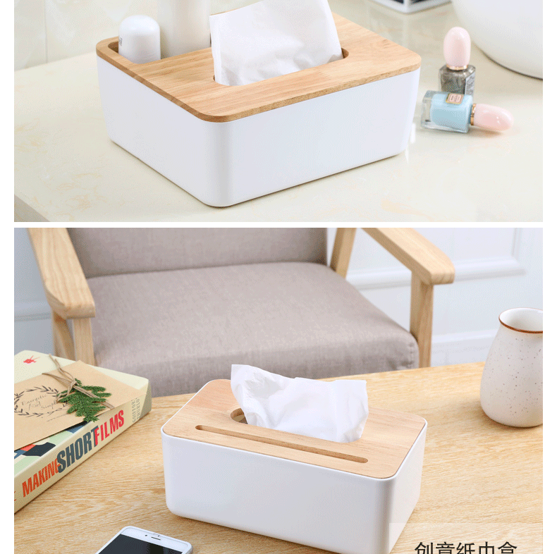 简约木盖圆形纸巾盒 客厅车用纸巾收纳盒加厚塑料抽纸盒子