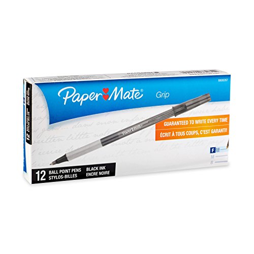 Paper Mate Write Bros Grip Ballpoint Pens, Fine Point (0.8mm), Black, 12 Count