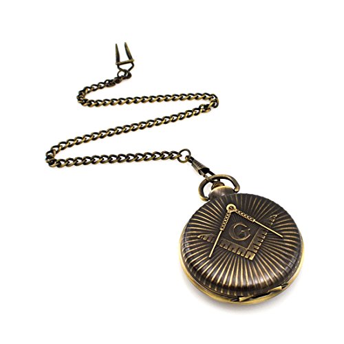 -. Feature : Classic Antique Mason / Masonic Watch Pocket Watch / Antique Tone / 14" chain with clip and gift box / Push button access / Quartz Japan Movement