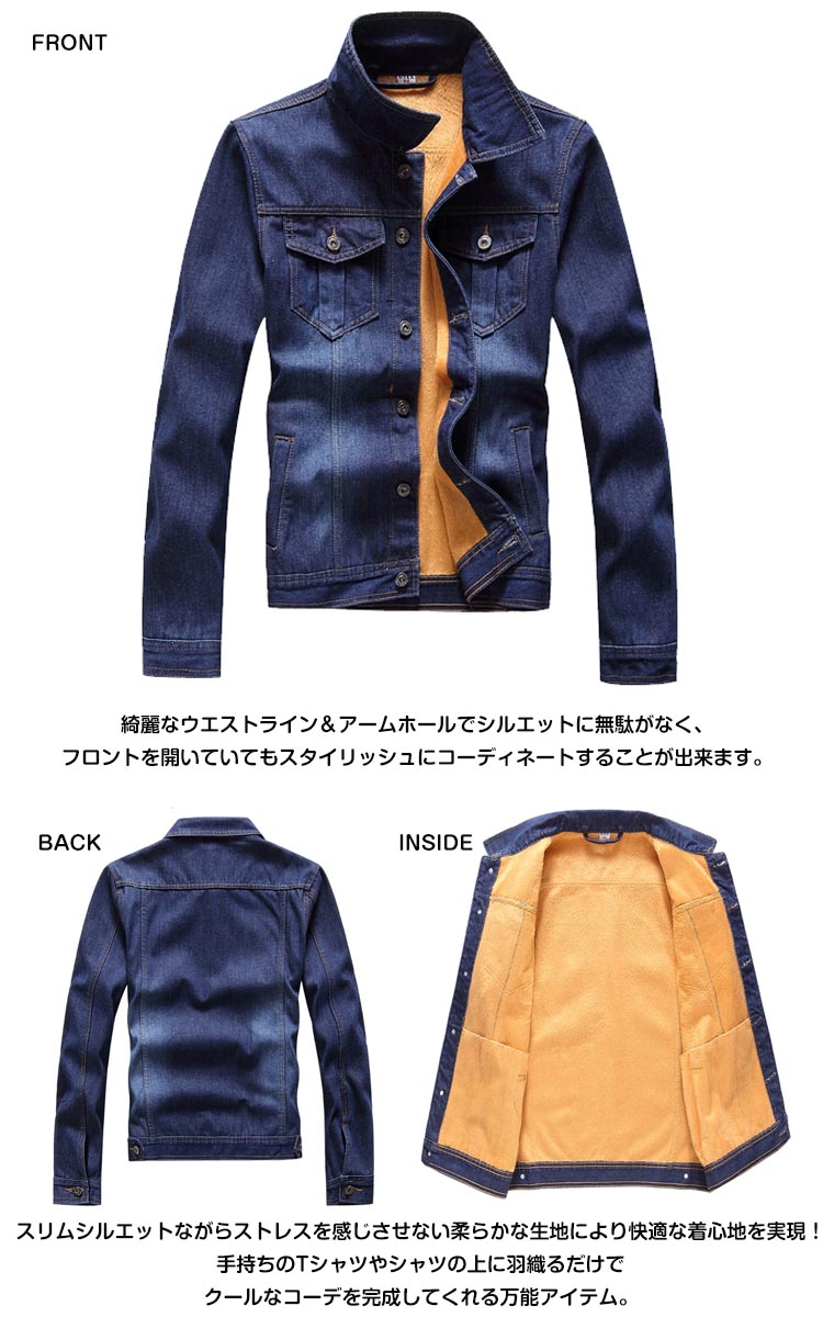 | 今期1枚買うなら損なしの裏起毛デニムジャケット!絶妙な色落ち加工、シルエット、サイジングにこだわり、冬の寒さも凌ぐ優秀な一枚。綺麗なウエストライン&アームホールでシルエットに無駄がなく、フロントを開いていてもスタイリッシュにコーディネートすることが出来ます。スリムシルエットながらストレスを感じさせない柔らかな生地により快適な着心地を実現!手持ちのTシャツやシャツの上に羽織るだけでクールなコーデを完成してくれる万能アイテム。 | |