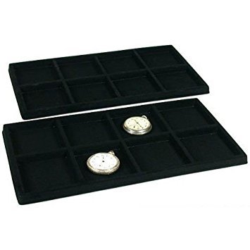 2 Black 8 Slot Pocket Watch Jewelry Display Case Tray Inserts