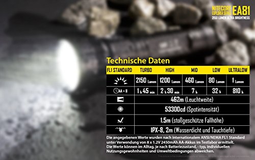 Nitecore EA81 - CREE XHP50 LED, 2150 Lumen, 8 x AA-Mignon Zelle