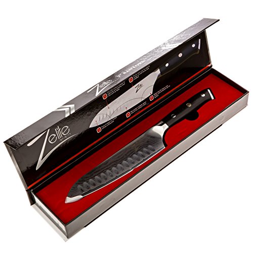 - Feature : SETTING THE NEW STANDARD FOR SANTOKU KNIVES >>> Impress Guests with your Visually Stunning, Extreme Performance Best Santoku Knife - Chef Knife adding Refinement and Style to any Modern Kitchen! Minimal Slicing Resistance, Satisfying Heft, Full Tang & Premium Materials! / PREMIUM JAPANESE STEEL - RAZOR SHARP >>> Imported Japanese Takefu VG10 Super Steel with 67-layer High Carbon Stainless Steel that incorporates a Hollow Ground Blade meaning Non-Stick, Exquisite Tsunami Rose Damascus Pattern and Liquid Nitrogen Tempering ensuring Long Lasting Performance! Stain & Rust Resistant / STUNNING TRIPLE RIVETED, ROUNDED HANDLE >>> G10 Handle Triple Riveted to the Full Tang for Extra Strength & Durability, Tastefully Adorned with the Zelite Infinity 3-Metal Mosaic Rivet. Ergonomically Designed Rounded Handles to ensure a Secure and Comfortable Grip! RARE Tapered Bolster for Extreme Comfort, Perfect Balance! / BEST VALUE, PREMIUM PACKAGING, UNRIVALLED PERFORMANCE >>> Don't compare on Price, You get what you Pay for! Razor Sharp Edge for Maximum Sharpness & Safety. Meat, Fish, Vegetables, Fruit and more are Precision Sliced. No tearing or squishing, only Ruthless Efficiency, Every Time! / RISK FREE LIFETIME GUARANTEE - WARRANTY >>> 100% Satisfaction or your Money Back, No Questions Asked. Our Santoku Knife has been built with Perfection in Mind. Ideal Gift for Weddings, Birthdays, Special Treats for Loved ones and more... You can't lose. Limited Supply, Order Now before they are Sold Out!
