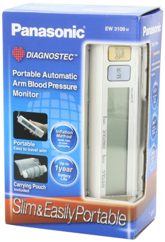 -. Binding : Health and Beauty -. Brand : Panasonic -. Color : White -. Department : Health & Beauty -. EAN : 0001910660339 -. Feature : Digital Filter Technology for Accurate Measurement / One Touch Operation-Easy to Use / Readings above 139 on Systolic or 89 Diastolic will automatically flash on the LCD screen / An automatic memory feature allows you to capture 90 readings and save them to track the readings over time / Large LCD Display, great gift for parents -. IsAdultProduct : 0 -. IsAutographed : 0 -. IsMemorabilia : 0 -. Label : Panasonic -. LegalDisclaimer : We do not in any way represent that any part we sell is legal to possess in your jurisdiction. Check with you local authorities to ensure it is legal for you to possess before buying! -. Manufacturer : Panasonic -. Model : EW3109W -. MPN : EW3109W -. NumberOfItems : 1 -. PackageQuantity : 1 -. PartNumber : EW3109W -. ProductGroup : Health and Beauty -. ProductTypeName : HEALTH_PERSONAL_CARE -. Publisher : Panasonic -. ReleaseDate : 2007-04-15 -. Size : accessory -. Studio : Panasonic -. Title : Panasonic EW3109W Portable Upper Arm Blood Pressure Monitor White/Grey -. UPC : 803982800114 -. Warranty : 2 Year