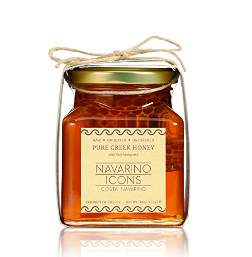NAVARINO ICONS Pure Greek Honey with Fresh Honey Comb, 14 Ounce