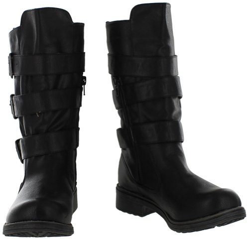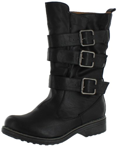 RAGGAE-01 Strappy Buckle Mid Calf Combat Boot