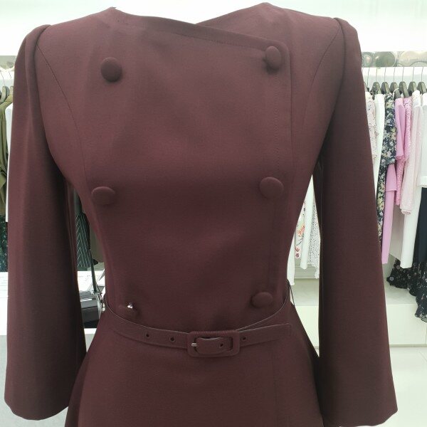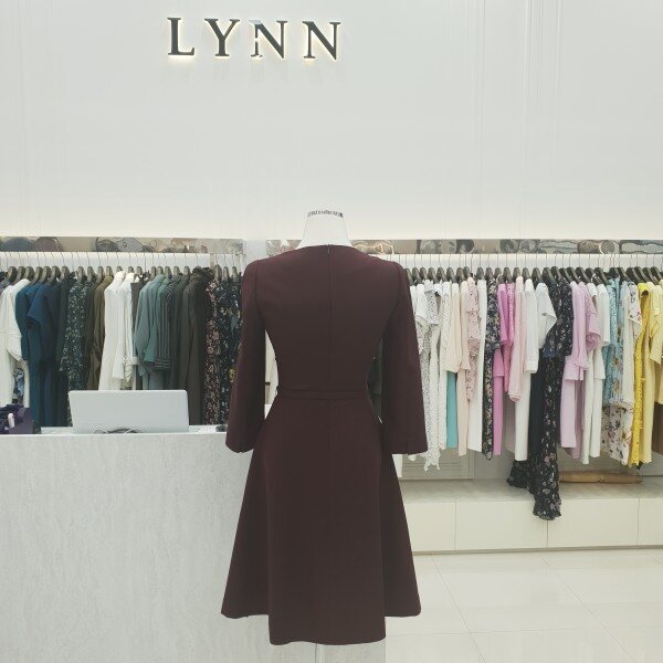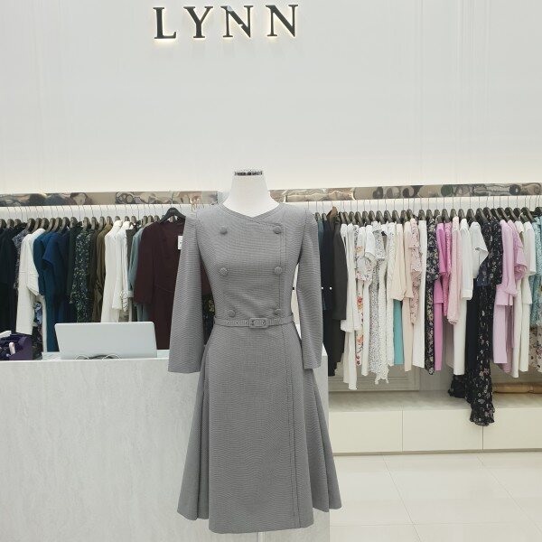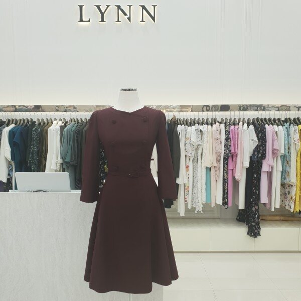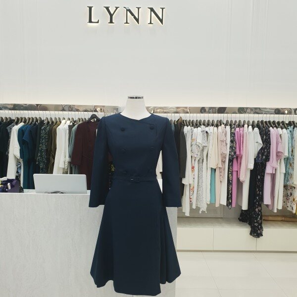 더블버튼 벨트 포인트 칠부소매 플레어 원피스입니다
