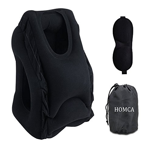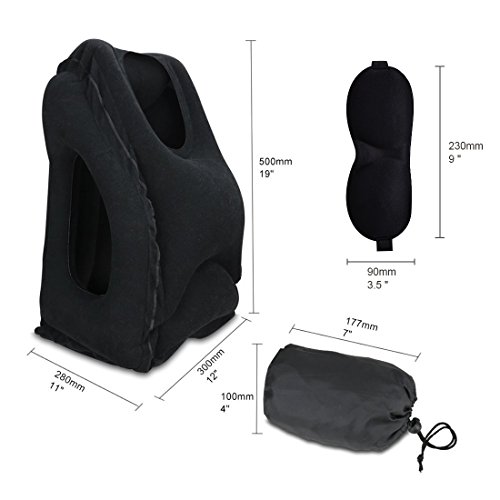 HOMCA Travel Pillow Made of Soft Cover Fabric,Unique Design Relax and Travel Comfortably in a Natural Forward Position, Allows You to Watch Movies or Play Games On Your Phone Within the Pillow! LIGHTWEIGHT AND PORTABLE These Pillow only 320g Weight ,With Compact Carry Bag ,Portable to Take it for Airplanes, Cars, Buses, Trains, Office Napping, Camping MULTI-USE AND ADJUSTABLE Different Ways to Use it , Choose Your Most Comfortable Posture,Making it Easier to Relax, Fall Asleep, and Stay Asleep Longer. Specification: Un-Inflated size:7 x 5.1 inches Inflated size: 37 x 35 x 51 cm Weight: 0.76lb Colour: Grey,Black Packing: Each inflatable pillow with a beam storage bag and an eye mask. Application: Used for taking a rest while having a tour by bus or plane; used for office breaking time. Easy to carry. Package included: 1 * Travel Nap Pillow 1 * Eye Msk 1 * Storage Bag 1 * User Manual How to use: 1. Upward pull out the valve cover to release the gas inside; 2. Block the valve with the middle valve cover and then blow; 3. After finishing inflating the pillow, please block the valve with the first valve cover soon to prevent air leakage. 0