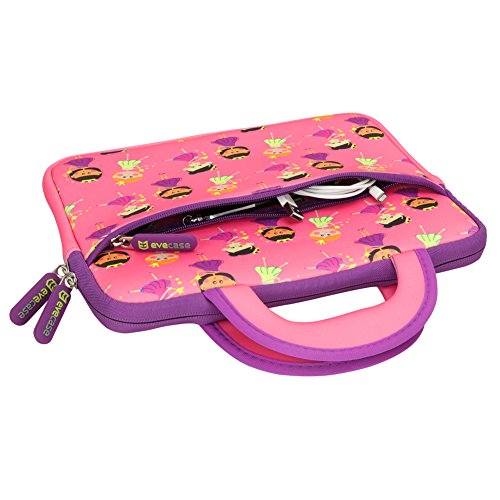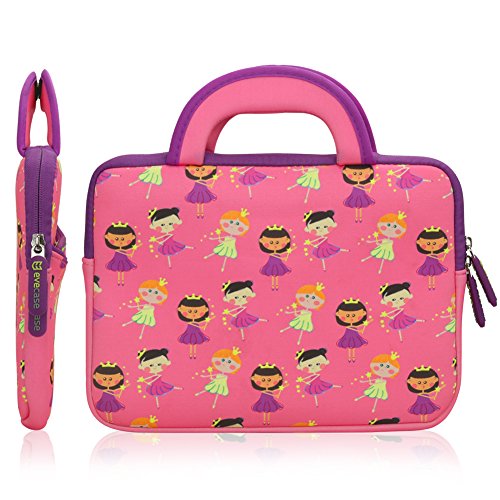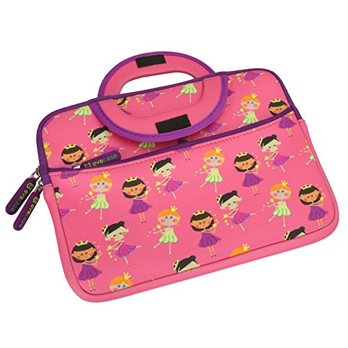 8.9 - 10.1 inch Kid Tablet Sleeve, Evecase Cute Fairy Tale Princess Themed Neoprene Carrying Sleeve Case Bag For 8.9 - 10.1 inch Kid Tablets (Pink and Purple Trim, With Dual Handle and Acces