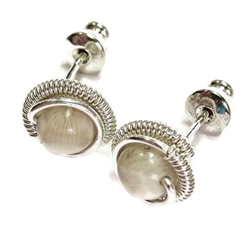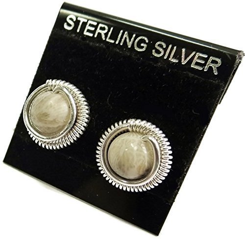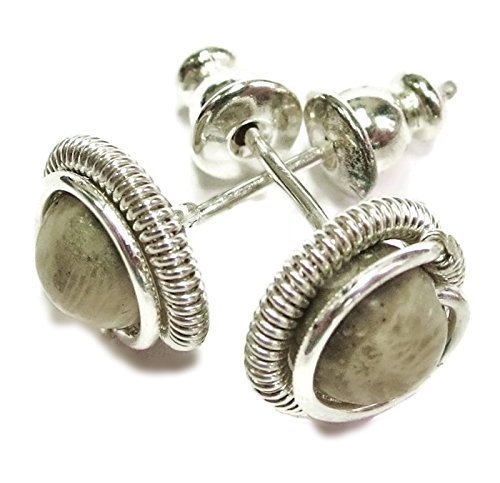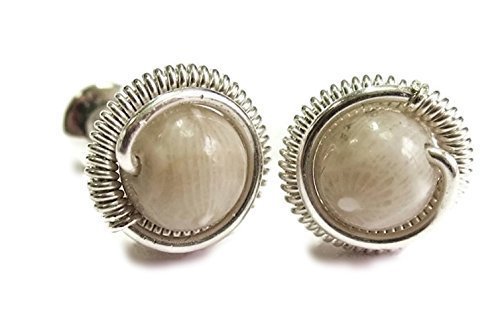 -. Title : Fossilized Coral & Sterling Silver Coiled Stud Post Earrings