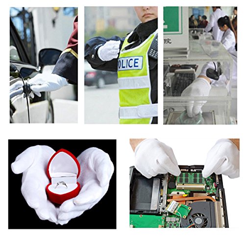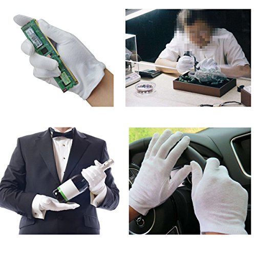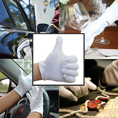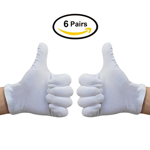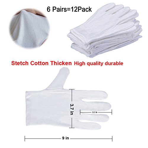 White Cotton Gloves, Matte 100% Cotton Stretchy Wrist Length Plain Blank Thin Gloves 6 Pairs by Ulyris