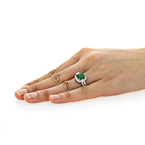 - Title : Sterling Silver Engagement Ring CZ Dimed Green Center Antique Fishing Ring, Rhodium Plated - Ring Size: 9