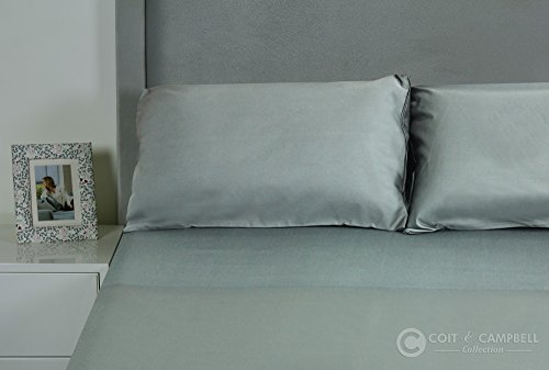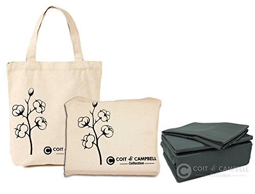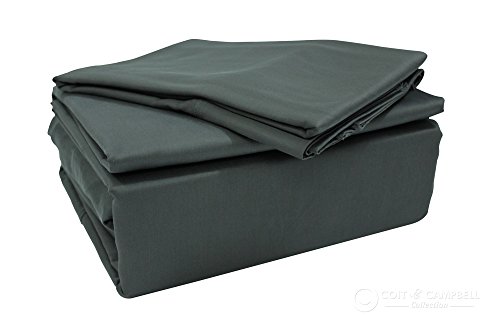 Coit & Campbell Hotel Premium Collection 600 Thread Count Solid 100% Cotton Sateen Bed Sheets Set (Queen Size, Dark Grey)