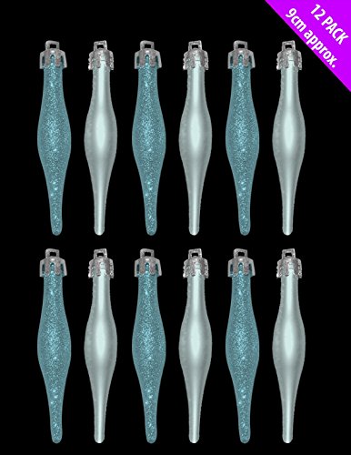 12 x 9cm BABY BLUE / ICE BLUE Glitter + Matt Droplet Christmas Tree Decorations