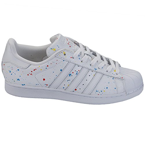 Studio : adidas Originals Publisher : adidas Originals Binding : Apparel Product Description Men's adidas Originals Superstar Trainers in White.- Full grain leather upper.- Lace up closure.- Cushioned collar and tongue.- Classic rubber shell toe.- Speckled effect colour detail throughout. - Leather 3-Stripes and heel patch.- Trefoil logo to heel and tongue.- Branding to heel, side and tongue.- Herringbone-pattern rubber outsole.- Leather upper, textile lining, Synthetic sole.- Ref: B42618 0