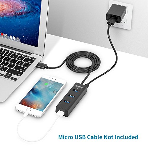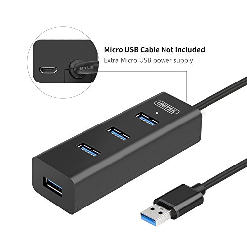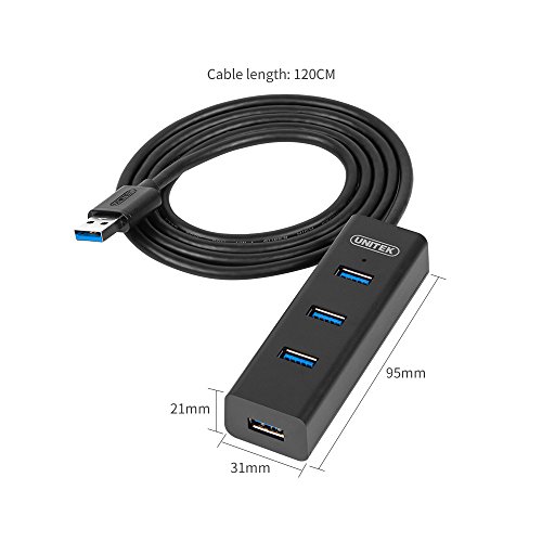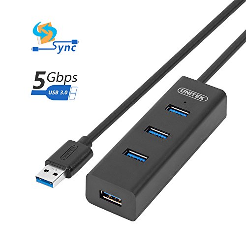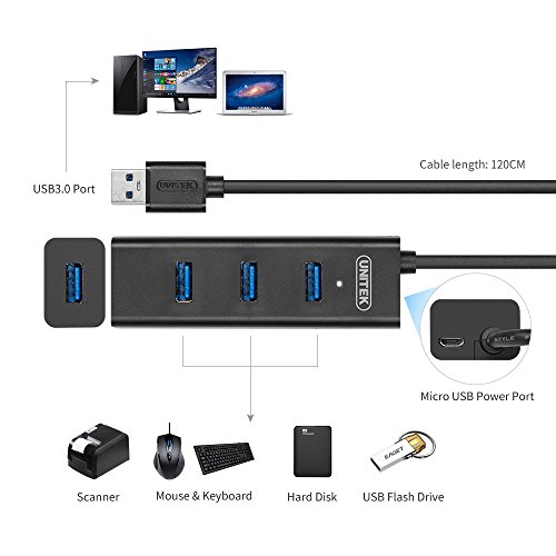 [USB Hub with Micro USB Charging Power Port] UNITEK Portable USB 3.0 4-Port Data Hub with Built-in 47-inch Cable with LED