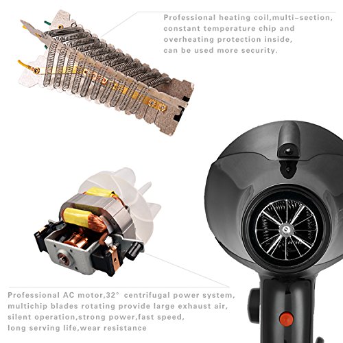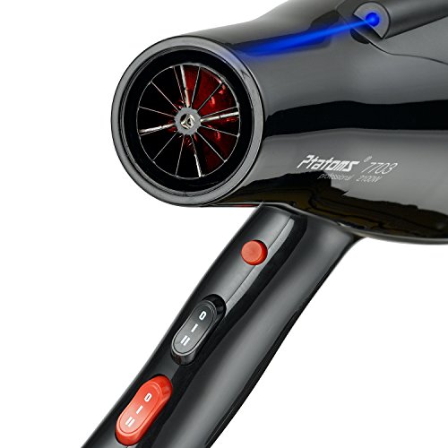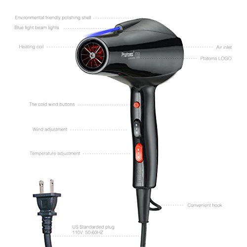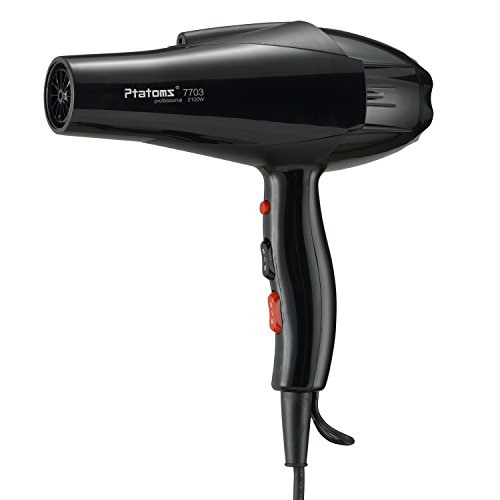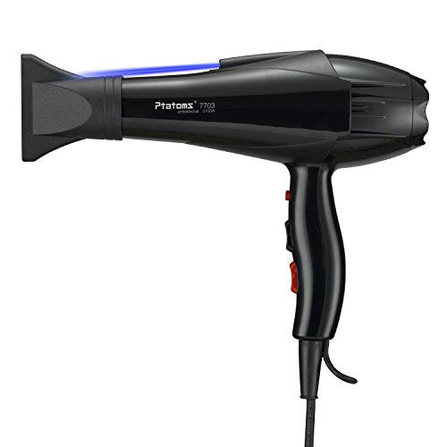 Ptatoms AC 2100w Constant Temperature Professional Hair Dryer with Blue light negative ionic function 2 Speeds - 3 Heat Settings for home barbershop -Black