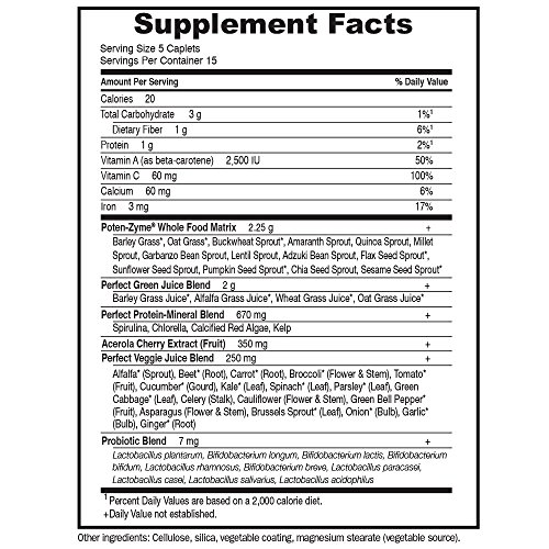 Perfect Food is a powerful formula packed with antioxidant green whole grasses and grass juices, micro algae, sea vegetables, whole vegetables and their juices, sprouted grains, seeds, legumes and acerola cherries. One serving of Perfect Food powder is equivalent to 140 grams of fresh grass juice.