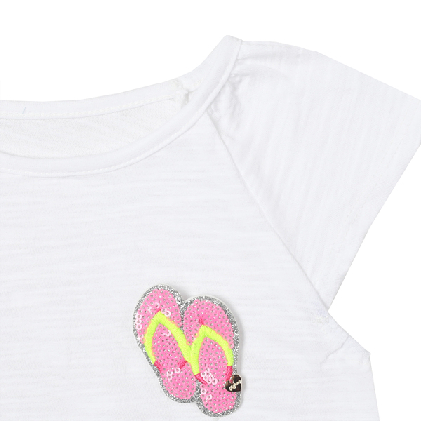 브롯지장식은 탈부착이 가능하며 팬츠,스커트 모두 코디가 용이한 티셔츠입니다.