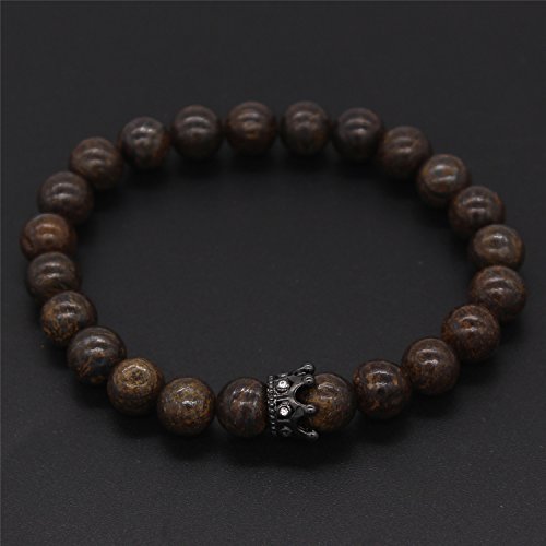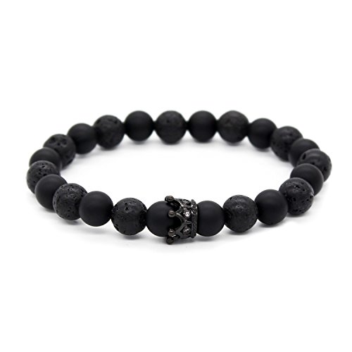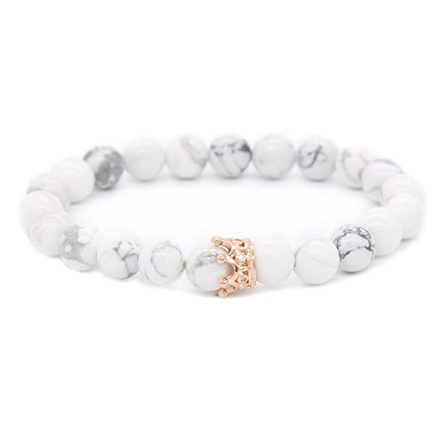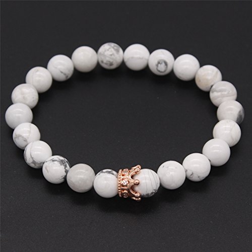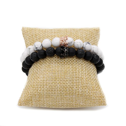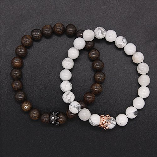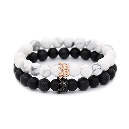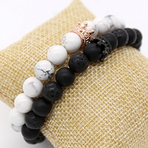 -. Title : POSHFEEL Couple Black Matte Agate & White Howlite CZ Crown Queen 8mm Beads Bracelet, 7.5"