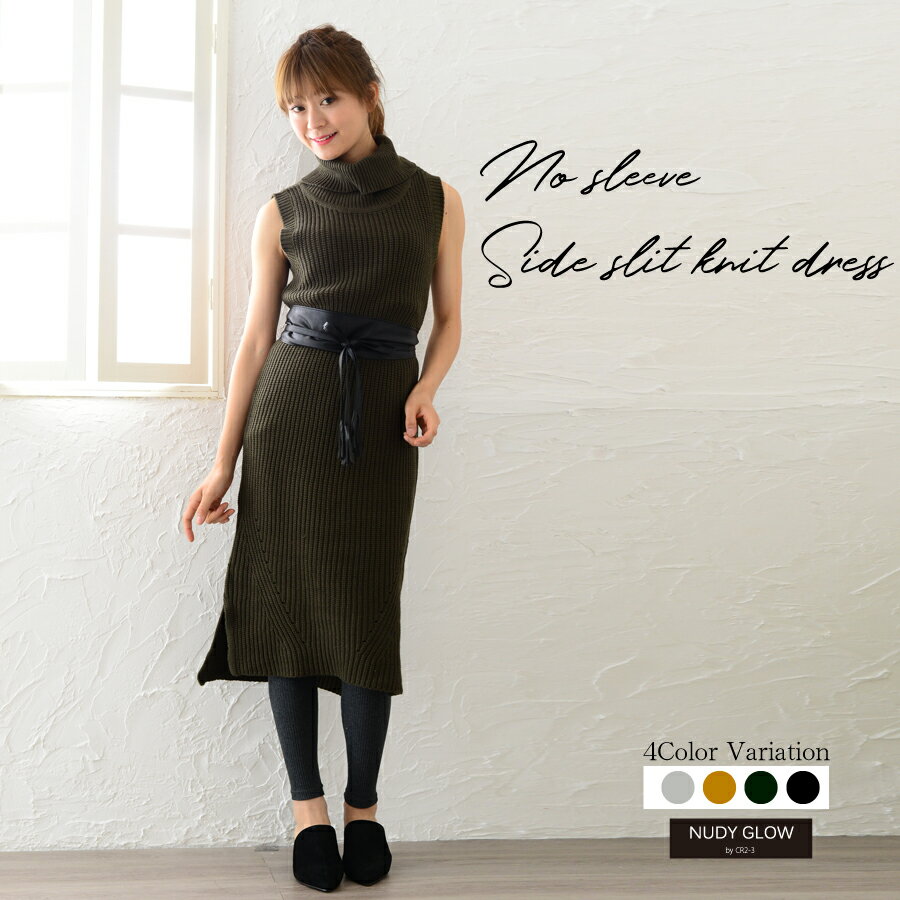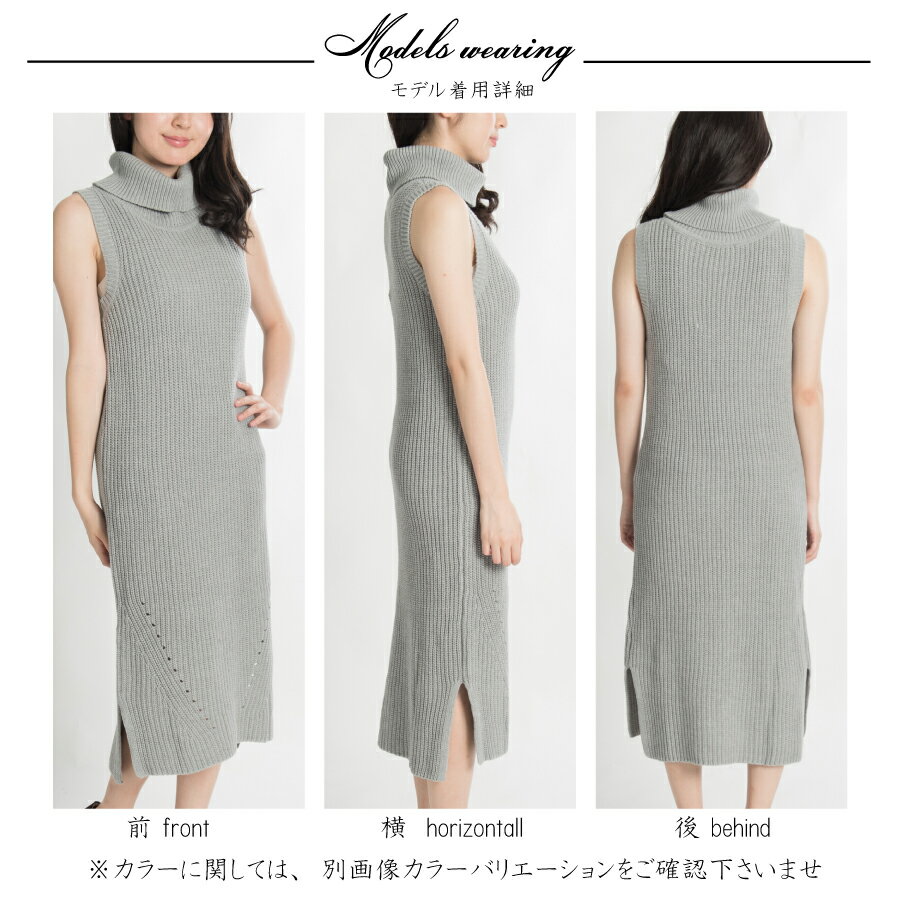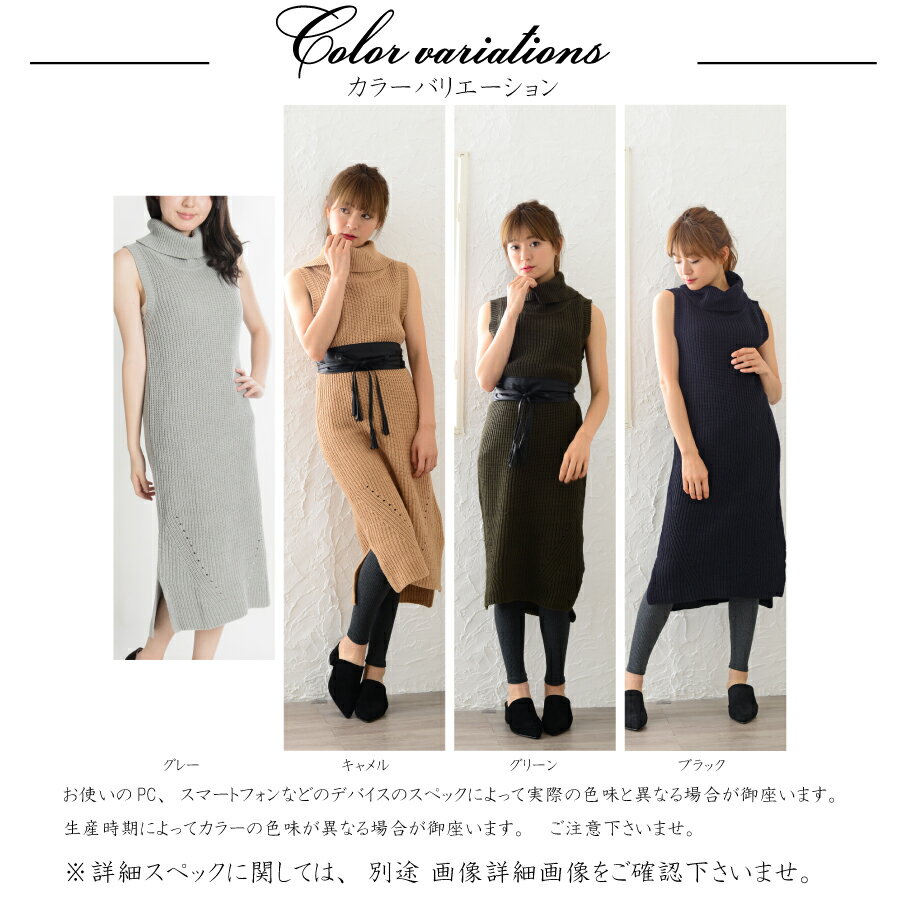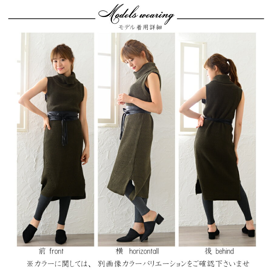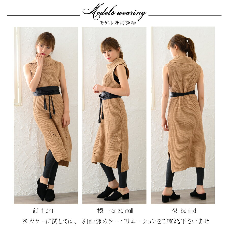 カットソーやシャツなどにレイヤードしたり、流行りのサッシュベルトをプラスしたりなど、様々なコーディネートが楽しめるオフタートルのノースリーブワンピ。