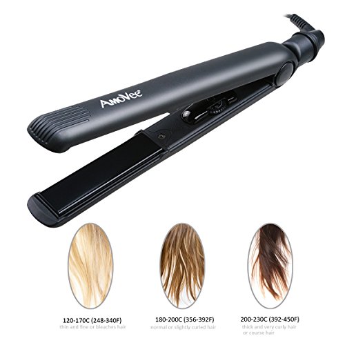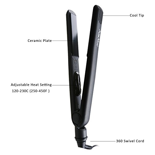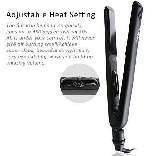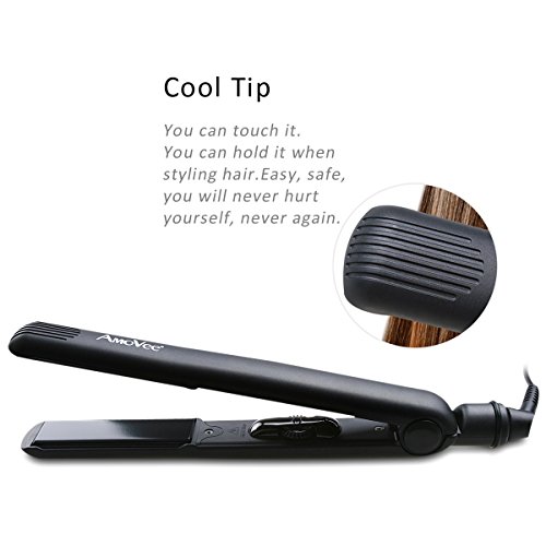 Title : AmoVee Professional Flat Iron with Ceramic Plates 1 Inch, 1" Ceramic Hair Straightener with Dual Voltage Auto Shut off 265 to 450F - Black