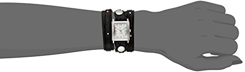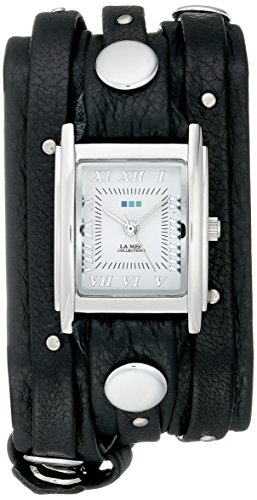 -. Binding : Watch -. Brand : La Mer Collections -. Color : black/silver -. Department : womens -. EAN : 0819007014640 -. Feature : Square silver-tone watch featuring Roman numeral markers and boho-inspired leather wrap band / 23 mm silver-tone case with mineral dial window / Quartz movement with analog display / Leather band with buckle closure / Not water resistant -. Label : La Mer Collections -. Manufacturer : La Mer Collections -. Model : LMSW1000 -. MPN : LMSW1000 -. PartNumber : LMSW1000 -. ProductGroup : Watch -. ProductTypeName : WATCH -. Publisher : La Mer Collections -. Studio : La Mer Collections -. Title : La Mer Collections Women's LMSW1000 Black Silver Stud Analog Display Quartz Black Watch -. UPC : 819007014640