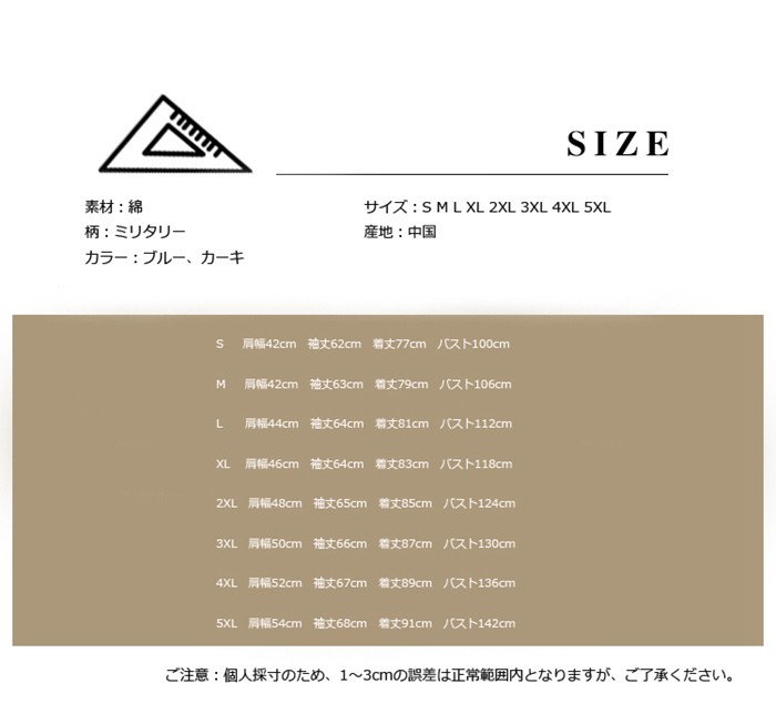 ジャケット メンズ 中綿ジャケット ダウンコート ショート丈 ダウンジャケット メンズ 無地 大きいサイズ カジュアル アウター 2018秋冬新作 中綿ジャケット メンズ ジャケット ダウンコート ショート丈商品詳細素材:綿柄:ミリタリーカラー:ブルー、カーキサイズ:S M L XL 2XL 3XL 4XL 5XL産地:中国サイズ参照表S 肩幅42cm 袖丈62cm 着丈77cm バスト100cmM 肩幅42cm 袖丈63cm 着丈79cm バスト106cmL 肩幅44cm 袖丈64cm 着丈81cm バスト112cmXL 肩幅46cm 袖丈64cm 着丈83cm バスト118cm2XL 肩幅48cm 袖丈65cm 着丈85cm バスト124cm3XL 肩幅50cm 袖丈66cm 着丈87cm バスト130cm4XL 肩幅52cm 袖丈67cm 着丈89cm バスト136cm5XL 肩幅54cm 袖丈68cm 着丈91cm バスト142cmご注意:個人採寸のため、1~3cmの誤差は正常範囲内となりますが、ご了承ください。ジャケット メンズ 中綿ジャケット ダウンコート ショート丈 ダウンジャケット メンズ 無地 大きいサイズ カジュアル アウター 2018秋冬新作 中綿ジャケット メンズ ジャケット ダウンコート ショート丈